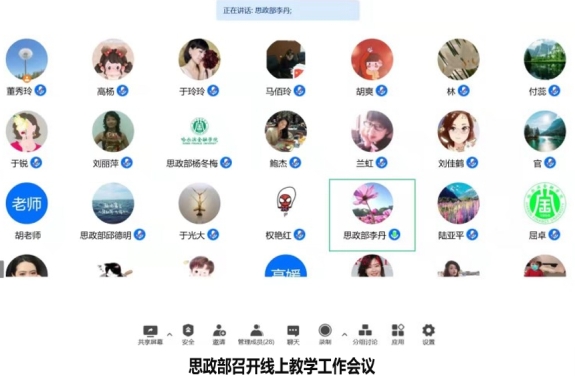 本学期思政部21名有课教师积极推进四门思政课在线教学工作顺利开展,主要依托雨课堂、腾讯课堂、钉钉、腾讯会议等网络教学平台开展线上教学直播活动,通过微信群、雨课堂、腾讯会议在线实时互动,以雨课堂平台作为依托开展学生出勤、测试练习、课堂互动、笔记抽查等在线教学互动活动,优化在线教学平台功能,最大化实现线上教学平台的优势互补功能,努力实现线上线下教学“同质等效”的效果。教学观摩经验交流后活动结束侯,与会老师们纷纷表示,学到了很多线上教学经验和课堂管理技巧,希望在以后要开展更多教学学习观摩交流活动,这样既有利于全面把握线上教学的基本情况,也有利于增进教师之间的教学经验交流,对于改进思政课线上教学方式,提升思政课线上教学质量具有积极的促进作用。