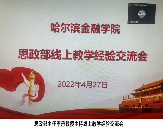2022年4月27日下午,思政部通过腾讯会议组织召开了线上教学经验交流与分享活动,此次活动由思政部主任李丹教授主持,思政部全体教师参加了此次会议。思政部拓展线上教学经验交流范围,以本学期承担的三门主干课程为依托开展线上教学经验交流分享活动,思政部林爽老师、屈卓老师、周丽艳老师三位教师分别从《毛泽东思想和中国特色社会主义理论体系概论》《习近平新时代中国特色社会主义思想概论》《中国近现代史纲要》三门课程线上教学经验和典型做法作主题发言交流。